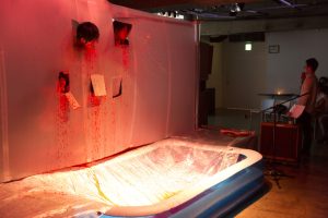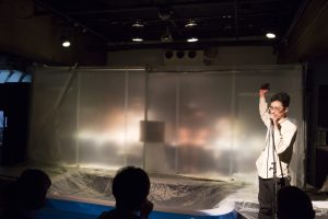 演者全員が息絶えたステージでは、司会者への、受賞作家が不機嫌な文学賞受賞会見を模した質疑応答が展開される。