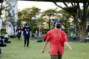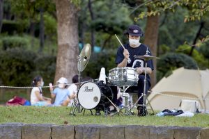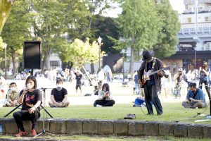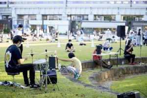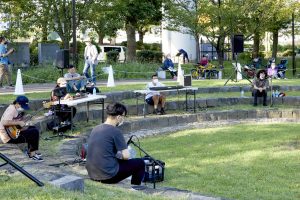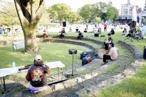 ギター、ベース、キーボード、ドラム、デスボイス、大正琴、小豆洗いの総勢11名の演奏者が、公園内の1本の樹木を中心として円形に配置されている。観覧スペースが設けられているが、仕切りはロープのみのため、一般の公園利用者も観覧可能である。